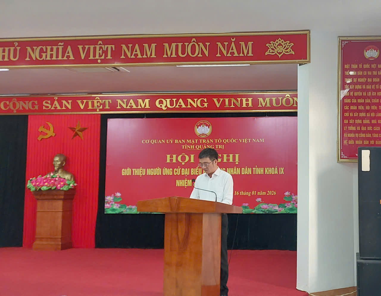 Kết qủa, 100% cử tri tham gia hội nghị đã biểu quyết nhất trí với danh sách những người được dự kiến giới thiệu ứng cử ại biểu HĐND tỉnh khóa IX, nhiệm kỳ 2026-2031gồm 05 người: Ông Nguyễn Chiến Thắng, Phó Bí thư Tỉnh ủy, Chủ tịch Ủy ban MTTQ Việt Nam tỉnh; Ông Đào Mạnh Hùng, UVBTV Tỉnh ủy, Phó Chủ tịch Thường trực Ủy ban MTTQ Việt Nam; Bà Lương Thị Thanh Thủy, Phó Trưởng Ban Dân chủ, giám sát và phản biện xã hội; Bà Nguyễn Thị Lệ Quyên, Chuyên viên Ban Tuyên giáo, công tác xã hội; Bà Nguyễn Thị Thùy Sâm, Chuyên viên Ban Công tác Công đoàn.