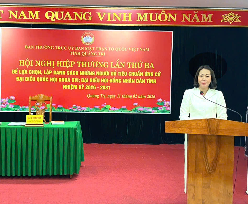 Từ nay đến ngày bầu cử, khối lượng công việc còn lại rất lớn, nhiều nội dung quan trọng cần được triển khai trong thời gian ngắn, trong khi Tết nguyên đán đang cận kề, đòi hỏi các cơ quan, đơn vị, địa phương phải chủ động, khẩn trương, tích cực phối hợp, nêu cao tinh thần trách nhiệm, tập trung triển khai các nhiệm vụ theo đúng tiến độ. Đồng thời, Phó Chủ tịch Thường trực Ủy ban MTTQ Việt Nam tỉnh đề nghị các cơ quan, đơn vị, địa phương tiếp tục phối hợp chặt chẽ với MTTQ, làm tốt công tác thông tin, tuyên truyền, góp phần nâng cao chất lượng các hoạt động vận động bầu cử, bảo đảm tạo sự đồng thuận xã hội để cuộc bầu cử ĐBQH khóa XVI và đại biểu HĐND tỉnh Quảng Trị nhiệm kỳ 2026 - 2031 thành công tốt đẹp, thực sự là ngày hội của toàn dân, diễn ra dân chủ, đúng pháp luật, an toàn./.
