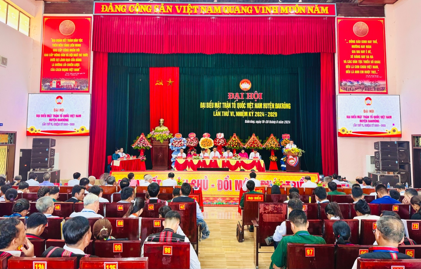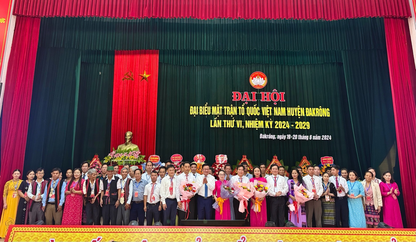 Trong 2 ngày 19 -20/6/2024, Uỷ ban MTTQ Việt Nam huyện Đakrông đã tổ chức Đại hội đại biểu MTTQ Việt Nam huyện lần thứ VI, nhiệm kỳ 2024 -2029. Tham dự và chỉ đạo Đại hội có đồng chí Đào Mạnh Hùng, UVBTV Tỉnh uỷ, Chủ tịch Uỷ ban MTTQ Việt Nam tỉnh; đồng chí Lê Hồng Sơn, Phó Chủ tịch Uỷ ban MTTQ Việt Nam tỉnh; đồng chí Dương Tân Long, Phó Chủ tịch Uỷ ban MTTQ Việt Nam tỉnh và các đồng chí trong Ban Thường trực Uỷ Ban MTTQ Việt Nam tỉnh.
