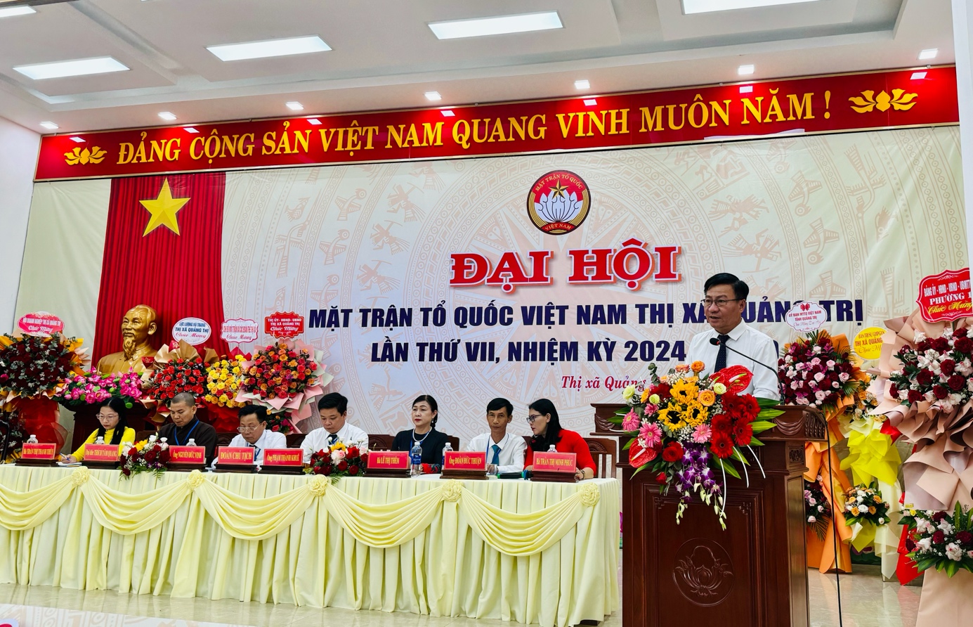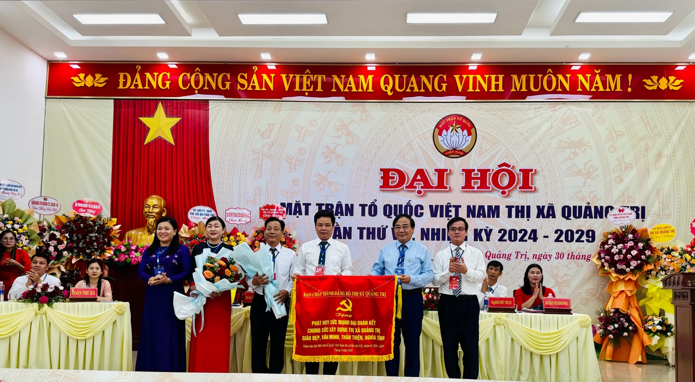 Thị uỷ Quảng Trị tặng Đại hội bức trướng mang dòng chữ “Phát huy sức mạnh khối đại đoàn kết, chung sức xây dựng thị xã Quảng Trị giàu đẹp, văn minh, thân thiện, nghĩa tình”