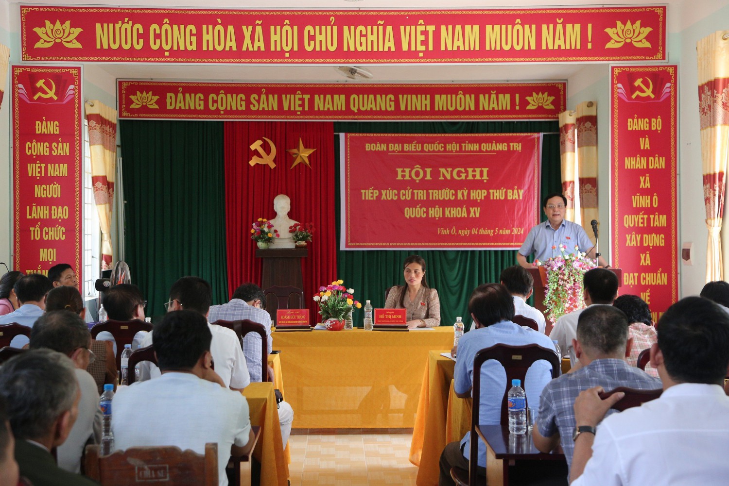 QTO - Hôm nay 4/5, Đoàn ĐBQH gồm Phó Trưởng đoàn Chuyên trách Đoàn ĐBQH tỉnh Hoàng Đức Thắng và Phó Trưởng Ban Dân tộc tỉnh Hồ Thị Minh có các buổi tiếp xúc với cử tri tại các xã Vĩnh Ô (Vĩnh Linh) và Gio An (Gio Linh) để tiếp nhận tâm tư, nguyện vọng gửi đến kỳ họp thứ 7, Quốc hội khóa XV.