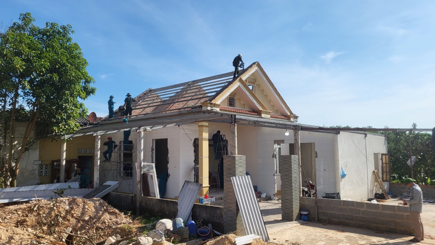 Hỗ trợ gia đình ông Trần Đức Hiếu, xã Vĩnh Hà tháo gỡ công trình trong sáng 30/5/2024 - Ảnh: NT