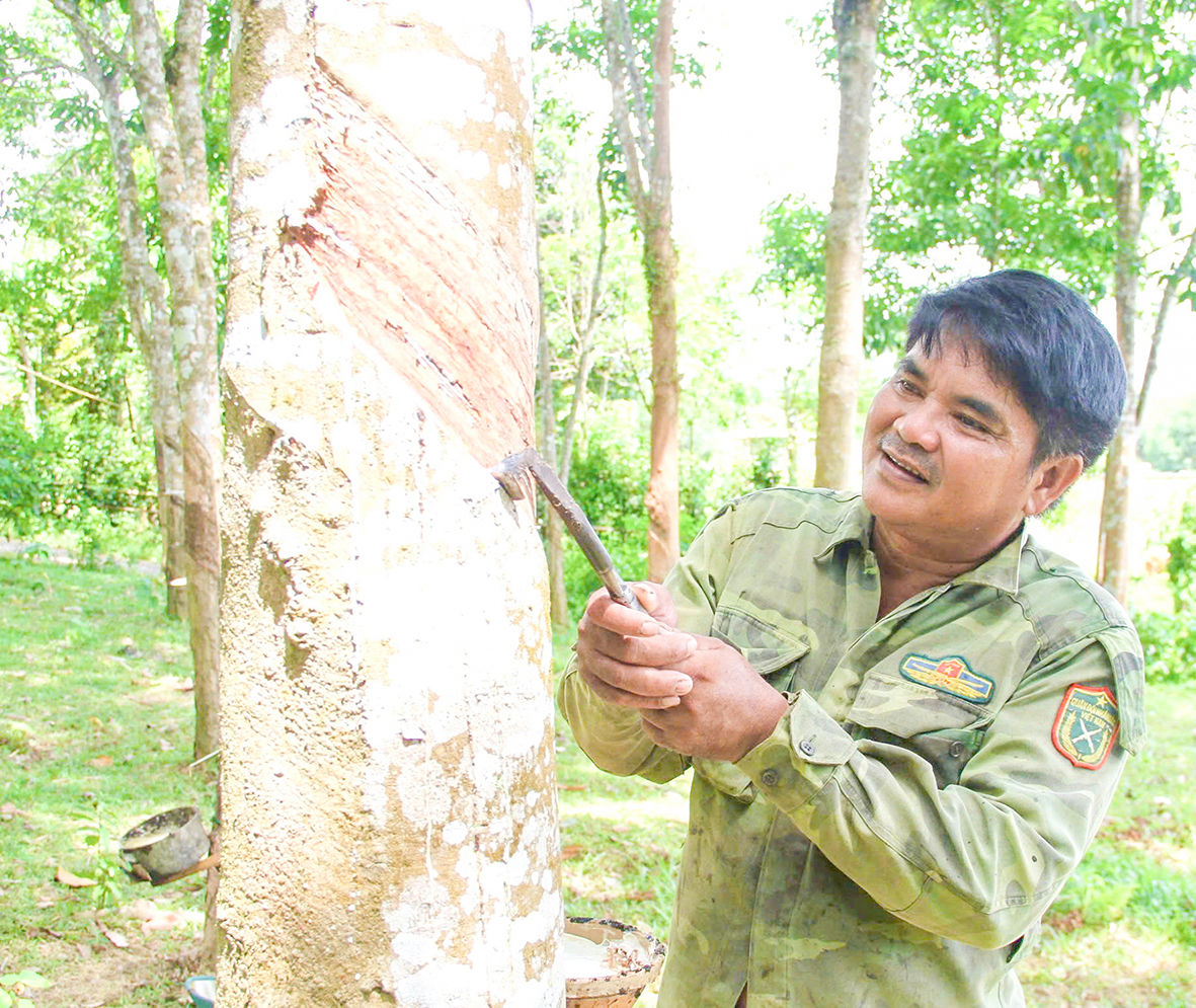 Anh kể: “Có thời điểm, giá thu mua mủ cao su hạ xuống thấp kỷ lục ảnh hưởng rất lớn đến thu nhập gia đình tôi và bà con. Dân bản nhiều người nản, không đi cạo mủ, người thì muốn chặt bỏ cao su trồng cây khác. Hiểu tâm lý của họ, tôi khuyên mọi người chớ nên từ bỏ thành quả bao năm mình vun đắp mà hãy vững tin, chờ ngày giá mủ cao su ổn định trở lại.”