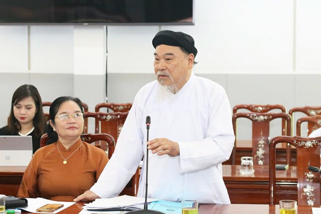 Giáo sư Thượng Mai Thanh, Trưởng Ban cai quản Thánh thất Cao Đài Thủ đô Hà Nội phát biểu tại Hội thảo