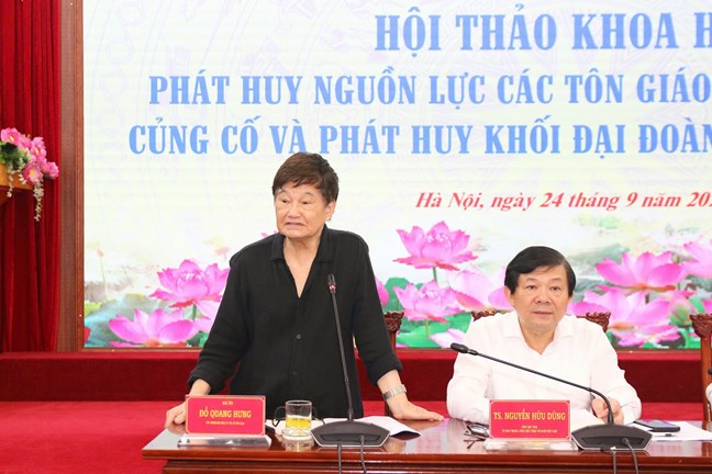 Tiếp thu ý kiến tâm huyết, sâu sắc của Đại biểu tham dự Hội thảo, GS.TS Đỗ Quang Hưng, Chủ nhiệm Hội đồng tư vấn về Tôn giáo Ủy ban Trung ương MTTQ Việt Nam khẳng định đây sẽ là căn cứ để Ban Thường trực Ủy ban Trung ương MTTQ Việt Nam đề ra các giải pháp nhằm tiếp tục phát huy nguồn lực các tôn giáo trong xây dựng, củng cố và phát huy khối đại đoàn kết toàn dân tộc trong thời gian tới.