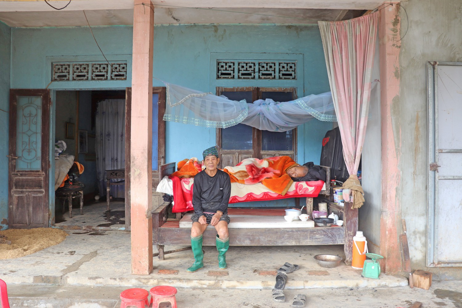 Trở về nhà sau khi nước rút, thứ đón chào hai người già đáng thương này là căn nhà hoang tàn, ngập trong bùn non. May có 2 chiếc giường hôm trước ông bà nhờ người kê chồng lên nhau để bỏ đồ, giờ trở thành chỗ để ông nằm dưỡng bệnh cảm sốt do dầm mưa. Bếp ga, đồ điện hỏng; hơn một tạ lúa chìm trong nước; đàn gà hơn 50 con cùng bàn ghế, ly chén trôi sạch.