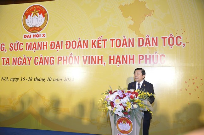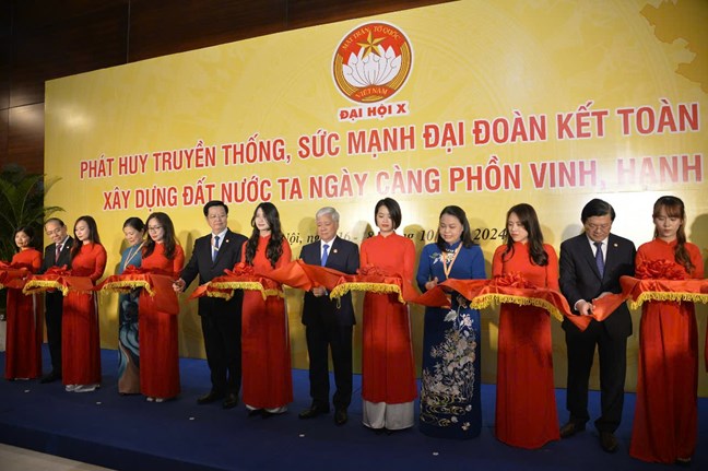 Trong khuôn khổ Đại hội đại biểu toàn quốc Mặt trận Tổ quốc Việt Nam lần thứ X, nhiệm kỳ 2024 - 2029, chiều ngày 16/10, tại Trung tâm Hội nghị quốc gia (Hà Nội), Ban Thường trực Ủy ban Trung ương Mặt trận Tổ quốc Việt Nam tổ chức Lễ khai mạc Triển lãm trưng bày hình ảnh khối đại đoàn kết toàn dân tộc và kết quả công tác Mặt trận nhiệm kỳ 2019 - 2024 với chủ đề “Phát huy truyền thống, sức mạnh đại đoàn kết toàn dân tộc, xây dựng đất nước ta ngày càng phồn vinh, hạnh phúc”