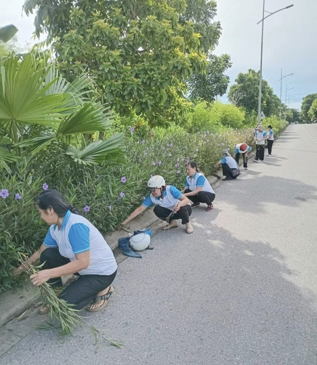 Hội viên Hội LHPN Phường 1, thành phố Đông Hà chăm sóc đường hoa, góp phần xây dựng khu phố sáng, xanh, sạch, đẹp - Ảnh: K.S