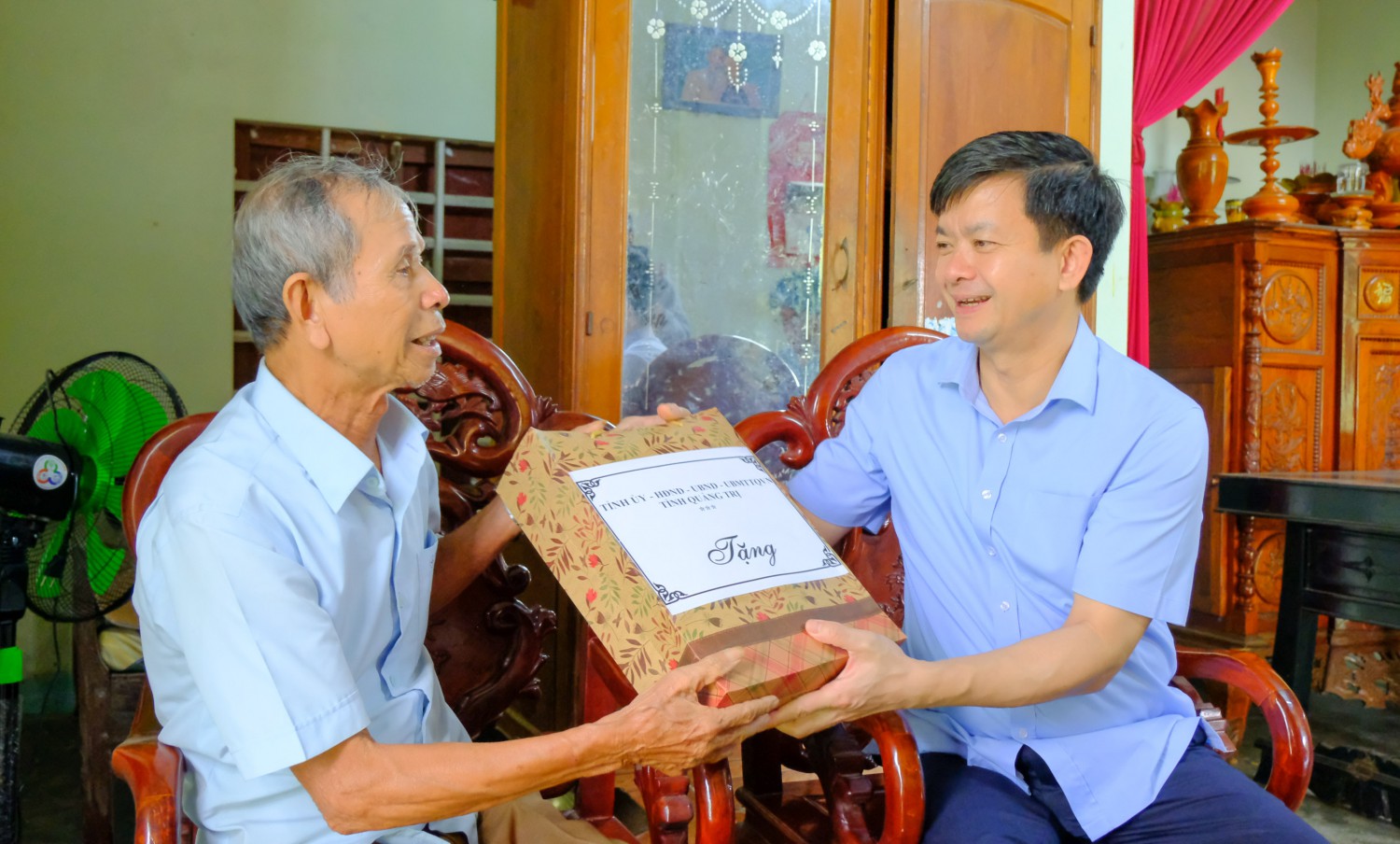 Bí thư Tỉnh ủy Lê Quang Tùng thăm, tặng quà ông Nguyễn Hữu Giằng - Ảnh: Trần Tuyền