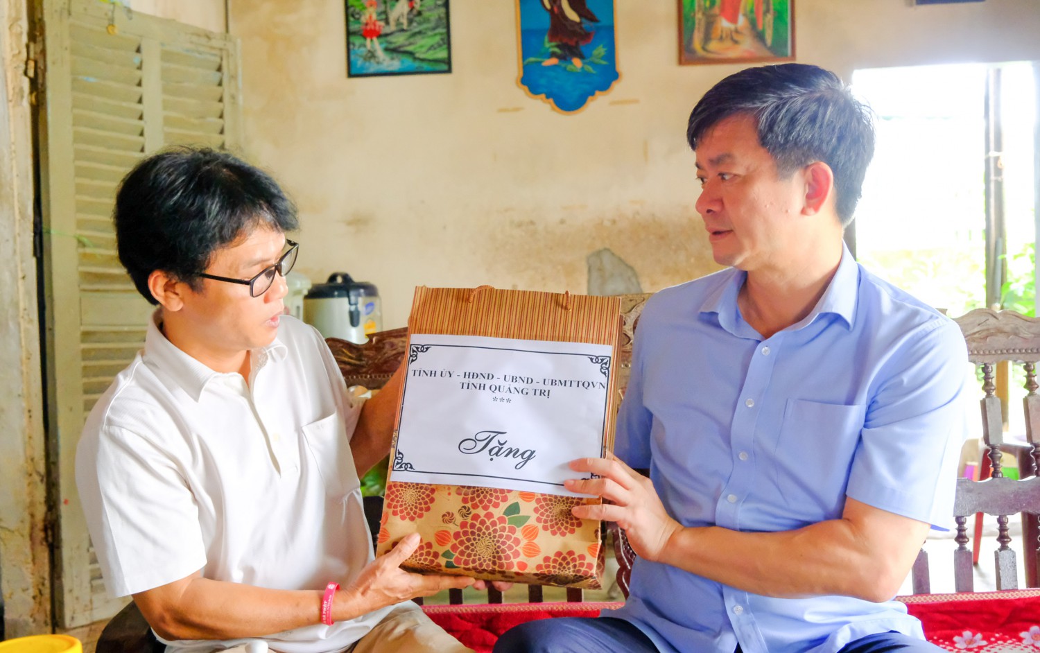Bí thư Tỉnh ủy Lê Quang Tùng thăm, tặng quà gia đình ông Võ Sỹ Liêm - Ảnh: Trần Tuyền