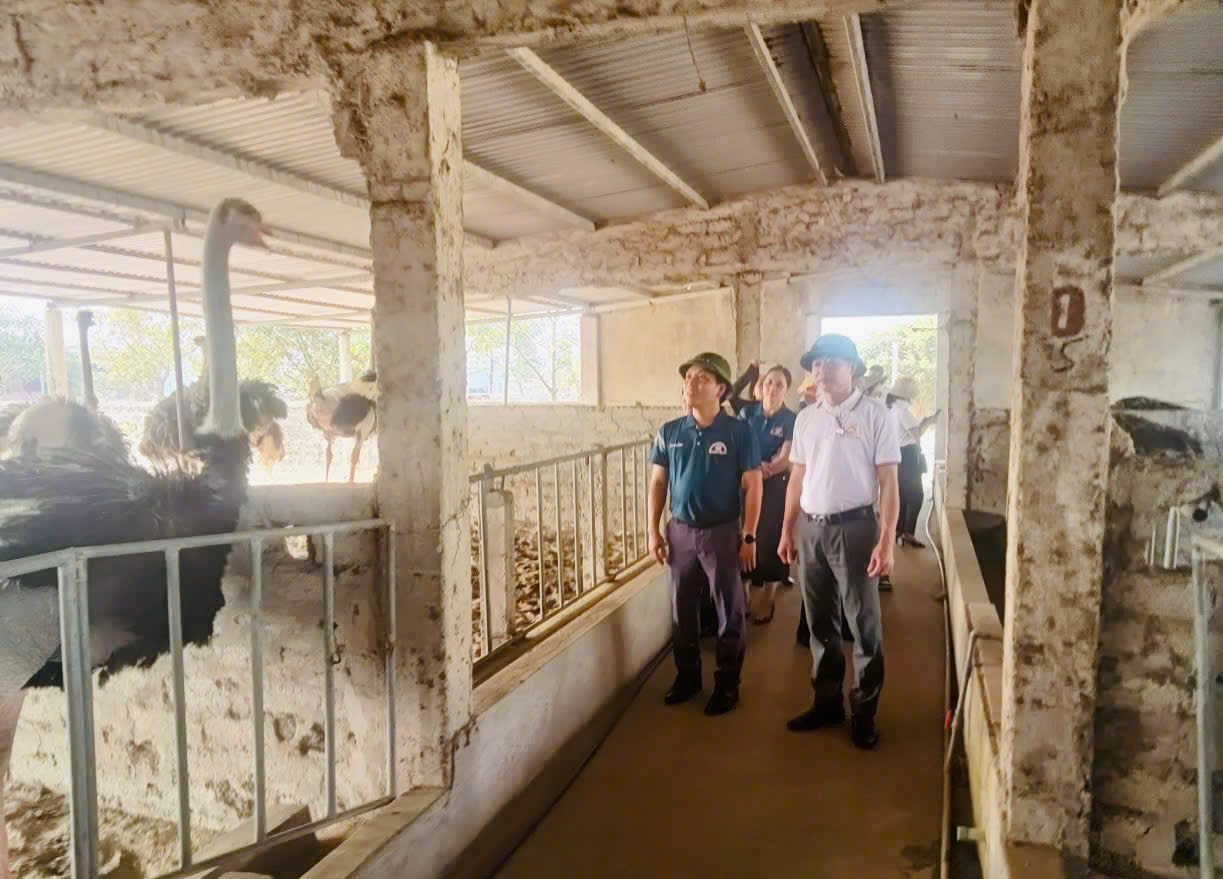 Trong khuôn khổ chương trình, đoàn công tác đã đi tham quan mô hình chăn nuôi Đà Điểu - một trong những mô hình tiêu biểu tại địa phương, qua đó tìm hiểu cách thức tổ chức sản xuất, phát triển kinh tế hiệu quả của người dân xã Quảng Trạch.