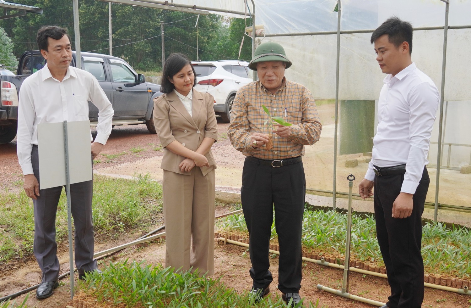 Phó Chủ tịch Thường trực UBND tỉnh Hà Sỹ Đồng kiểm tra mô hình vườn ươm cải tiến ươm giống cây lâm nghiệp tại xã Vĩnh Hà, huyện Vĩnh Linh- Ảnh: TN