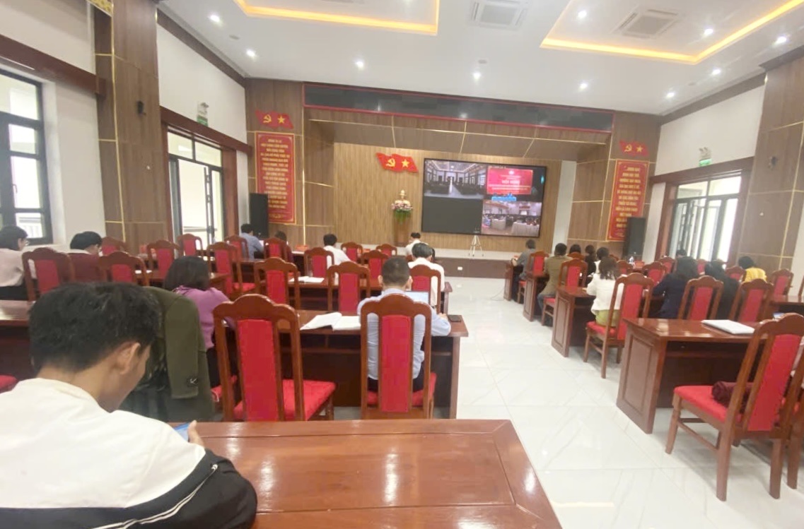 Đông đảo cử tri tham gia Hội nghị tại điểm cầu xã Hướng Hiệp.