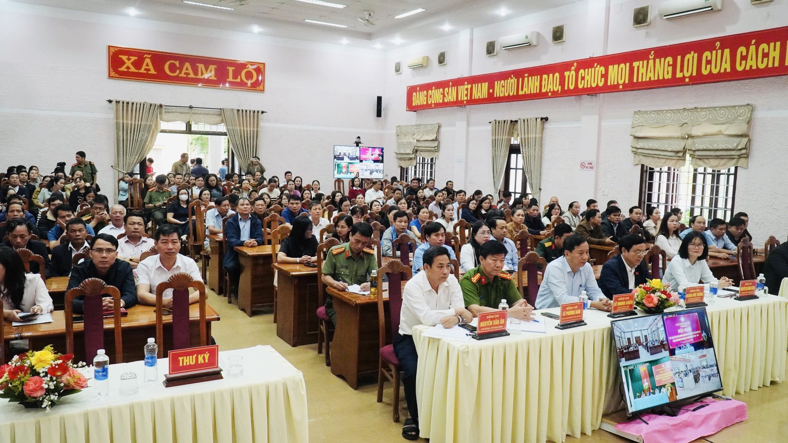 Tham dự tại điểm cầu xã Cam Lộ có các đại biểu khách mời: ông Lê Quang Chiến, Ủy viên Ban Thường vụ Tỉnh ủy, Bí thư Đảng ủy, Chủ tịch HĐND phường Đông Hà; ông Hoàng Đức Thắng, Phó Trưởng đoàn phụ trách Đoàn đại biểu Quốc hội tỉnh Quảng Trị; ông Lê Phương Nam, Đại tá, Phó Giám đốc Công an tỉnh; ông Dương Tân Long, Phó Chủ tịch Ủy ban Mặt trận Tổ quốc Việt Nam tỉnh; cùng lãnh đạo các xã Cam Lộ, Hiếu Giang, Hướng Hiệp và đông đảo cử tri của ba xã.