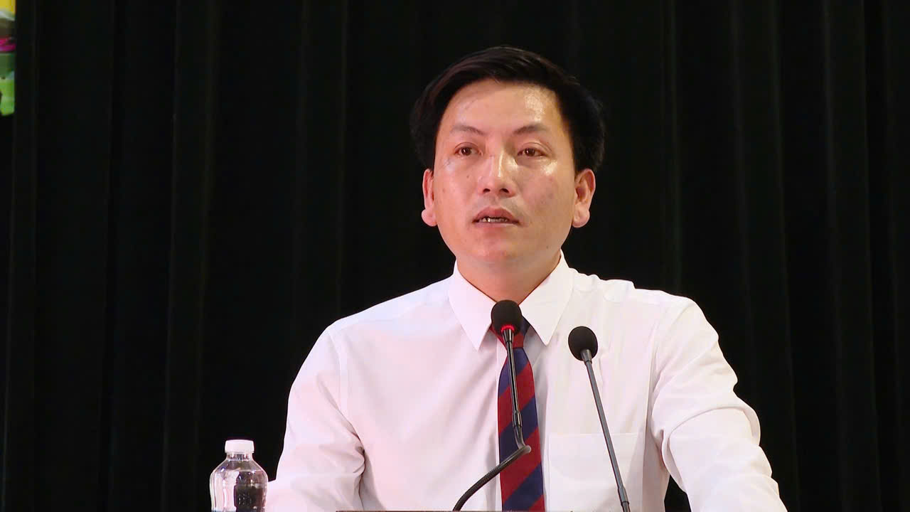 Đ.c Trần Quốc Tuấn, UVTV Đảng ủy, Chủ tịch Ủy ban MTTQ Việt Nam xã phát biểu khai mạc hội nghị