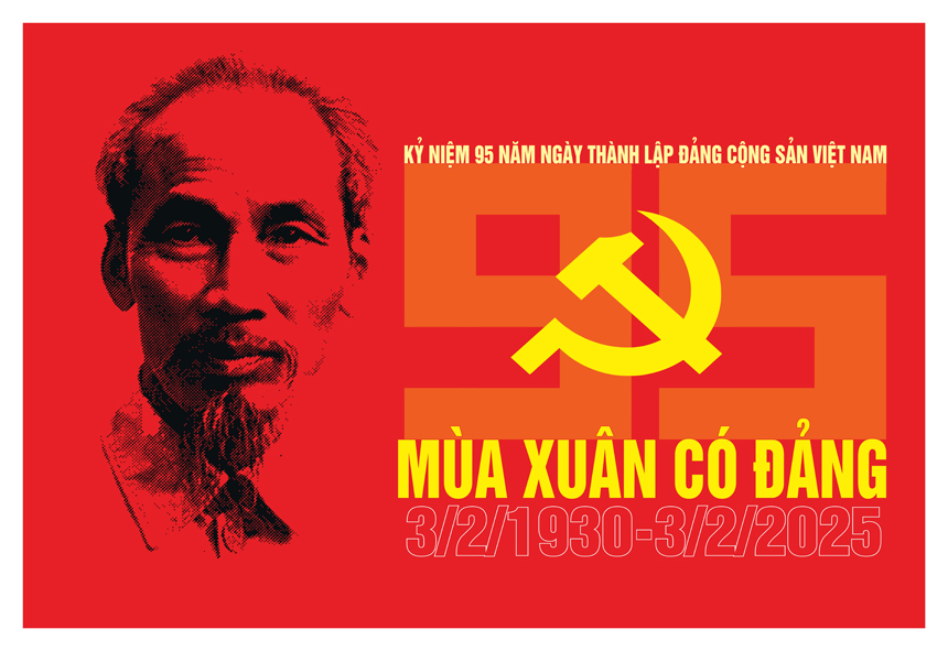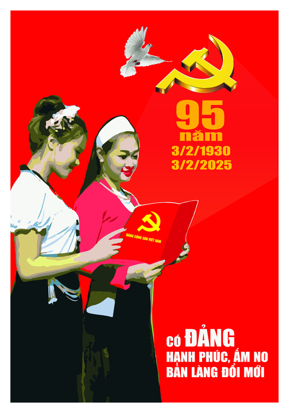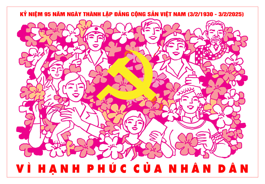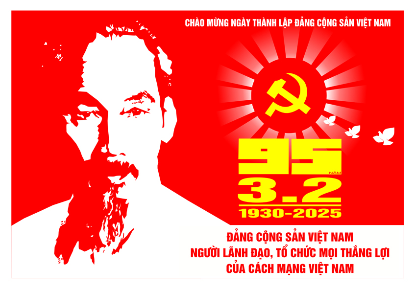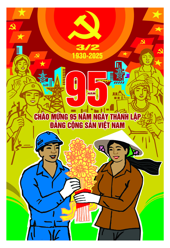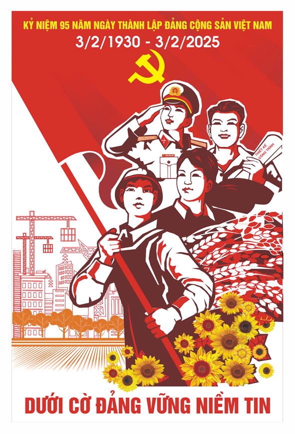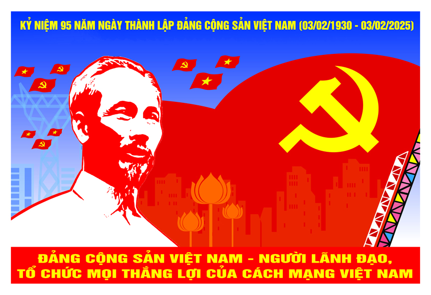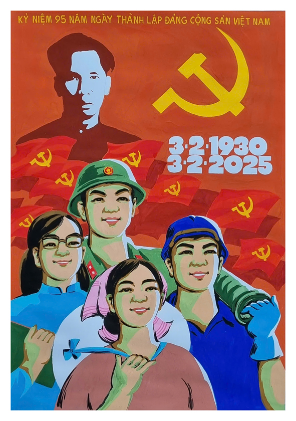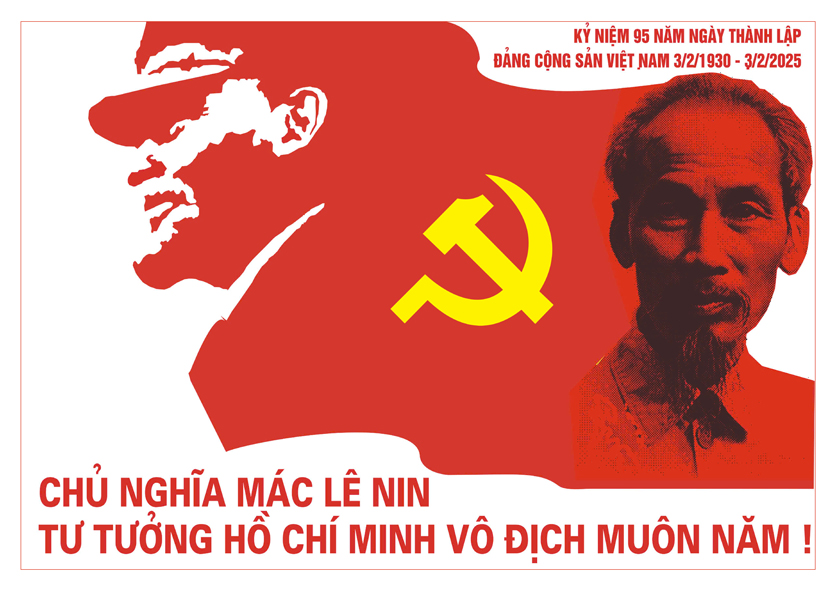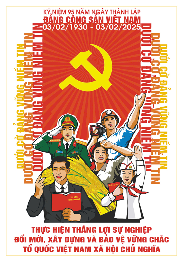 Tranh cổ động tuyên truyền kỷ niệm 95 năm Ngày Thành lập Đảng Cộng sản Việt Nam (03/02/1930-03/02/2025)