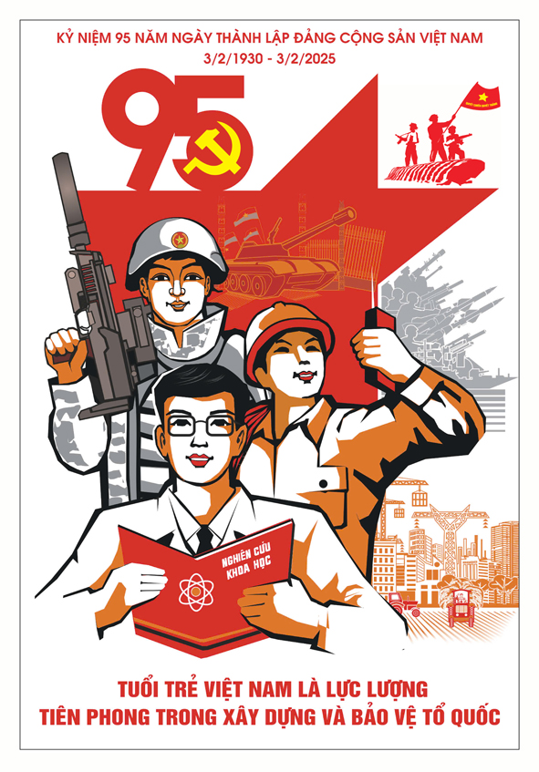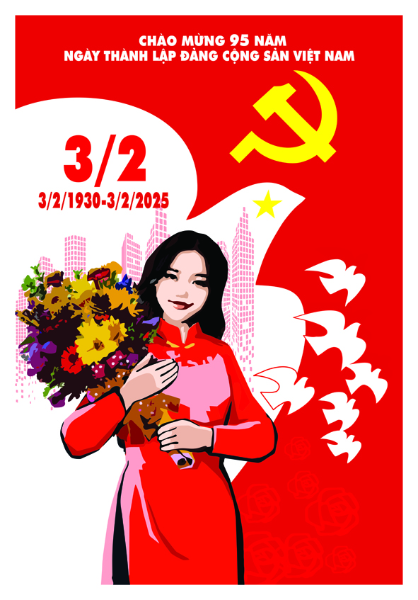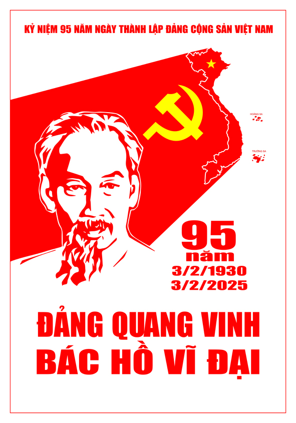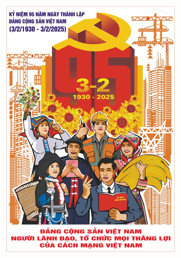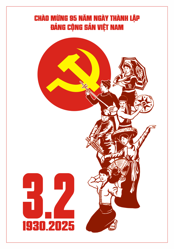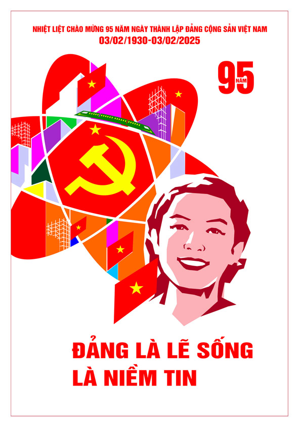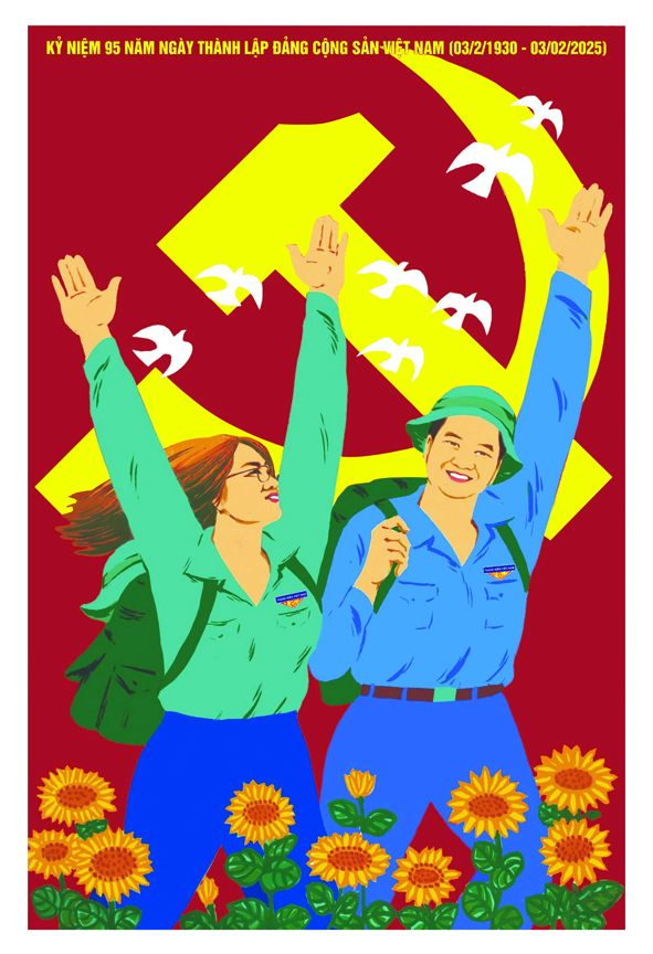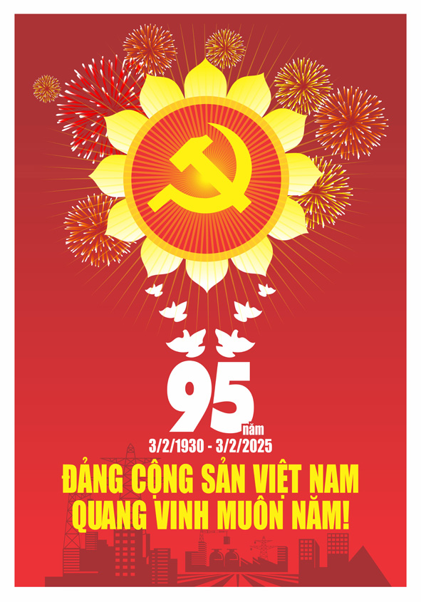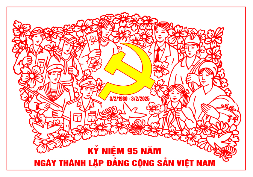 Tranh cổ động tuyên truyền kỷ niệm 95 năm Ngày Thành lập Đảng Cộng sản Việt Nam (03/02/1930-03/02/2025)