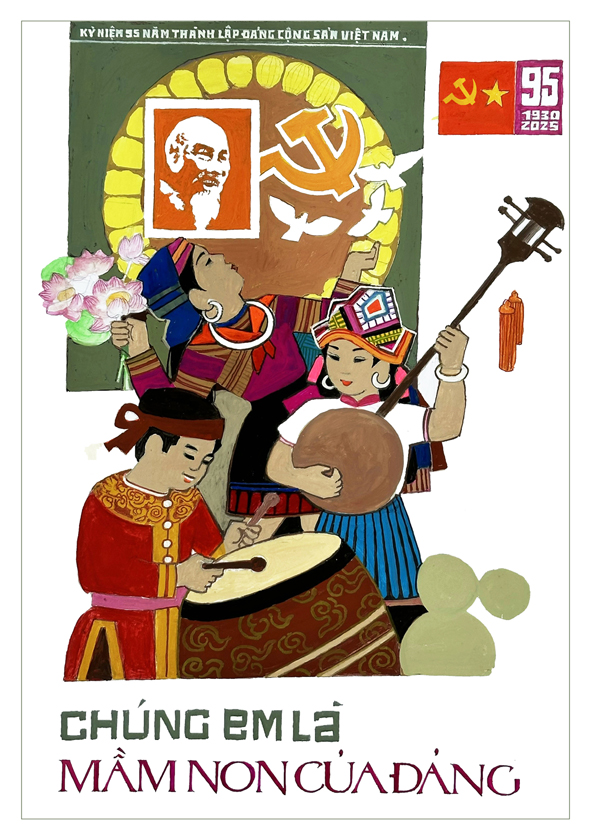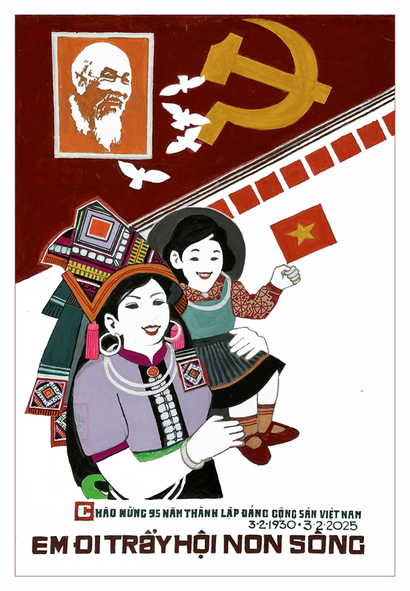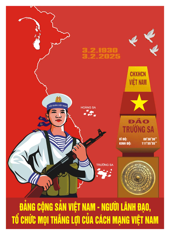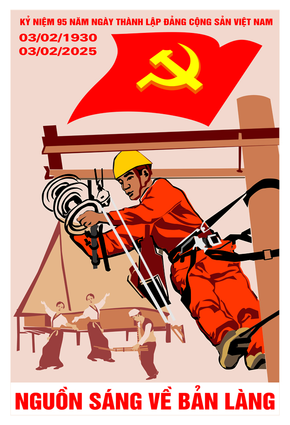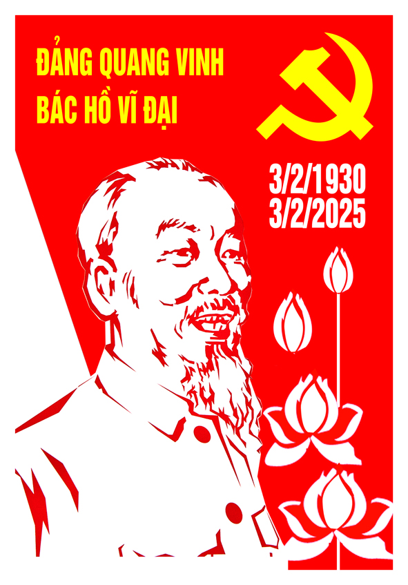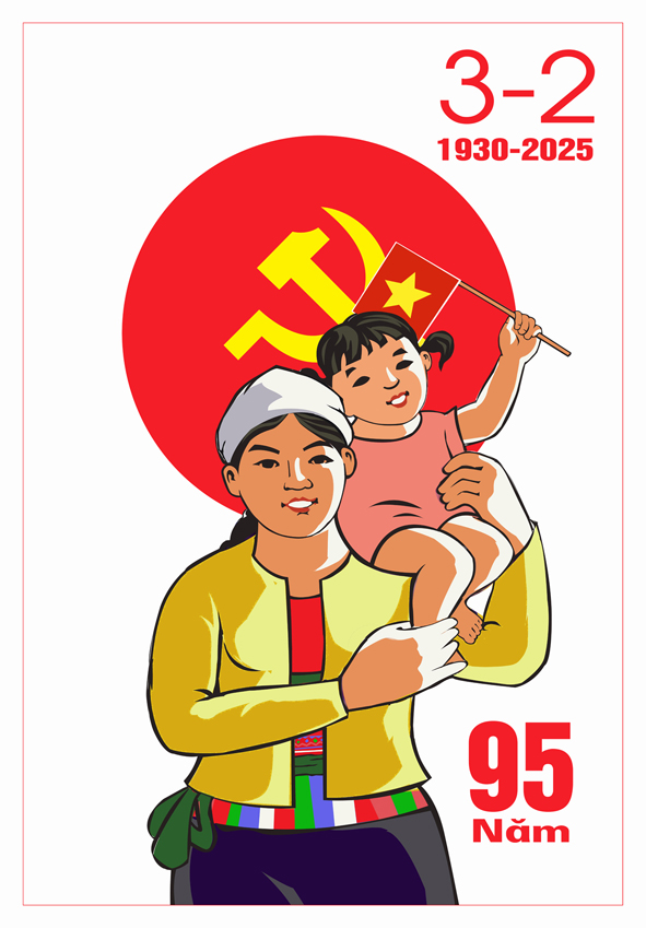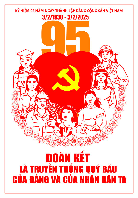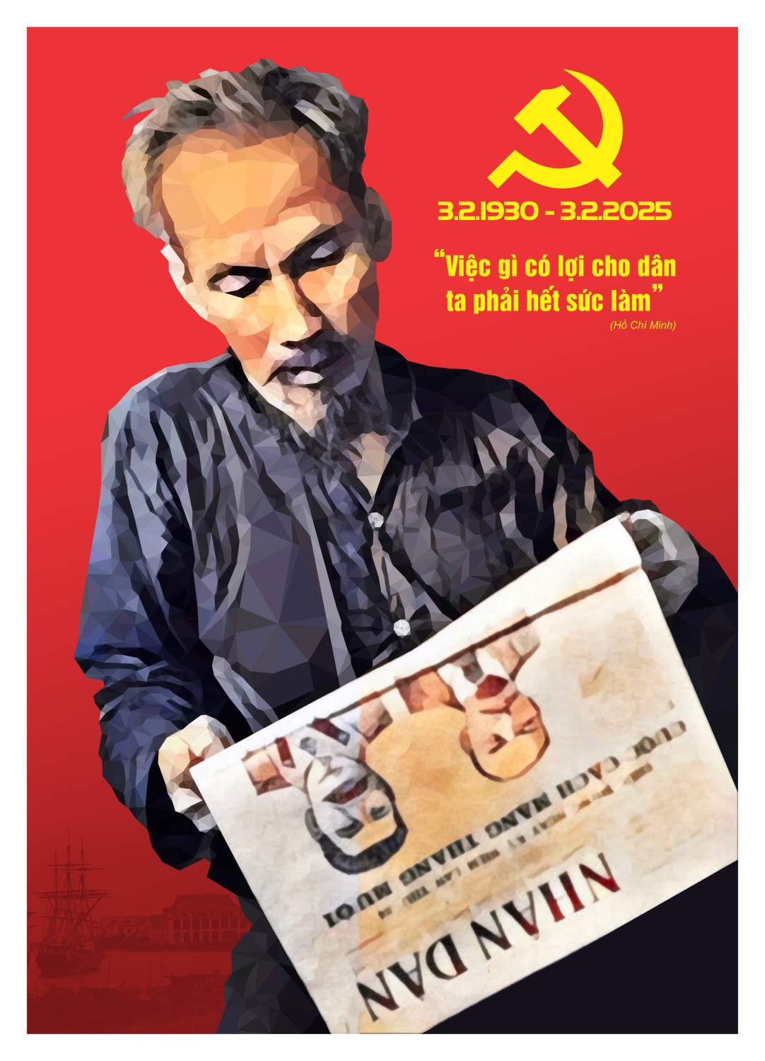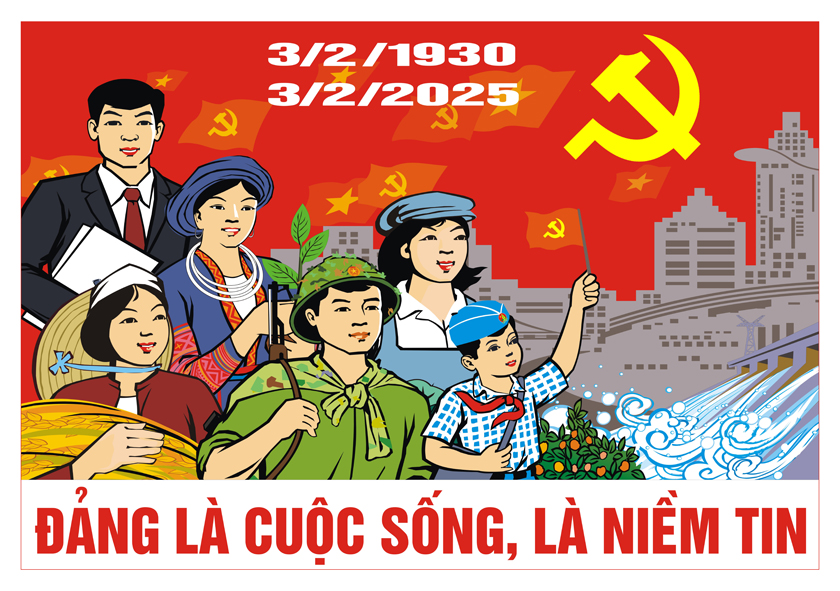 Tranh cổ động tuyên truyền kỷ niệm 95 năm Ngày Thành lập Đảng Cộng sản Việt Nam (03/02/1930-03/02/2025)