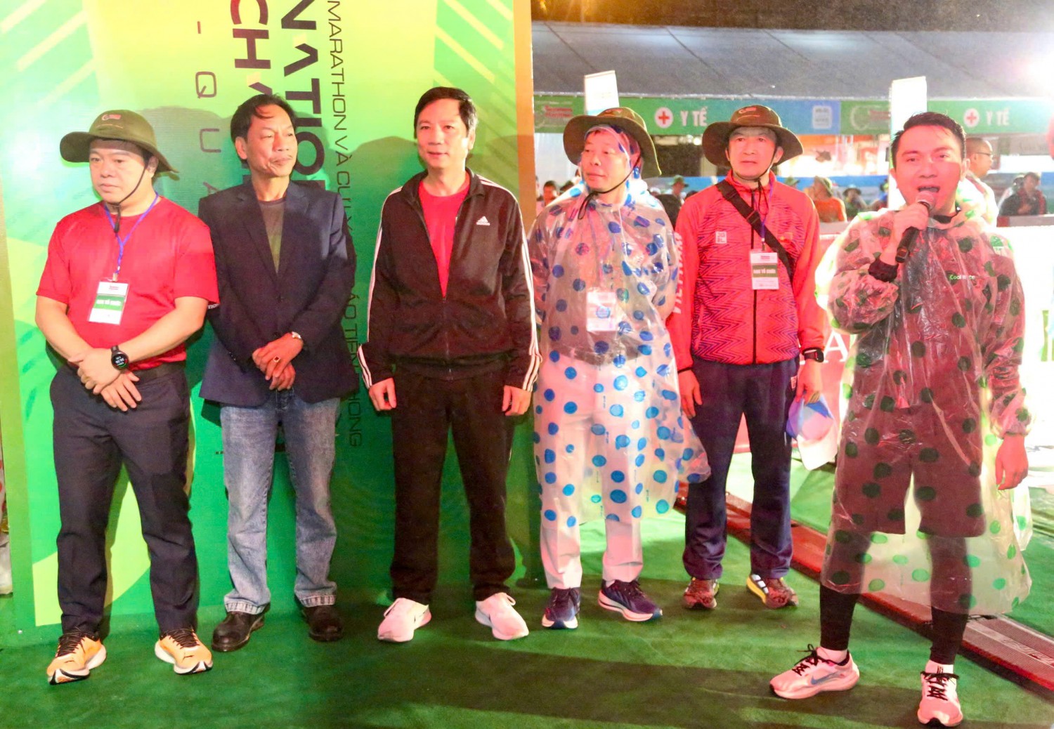 Phó Chủ tịch UBND tỉnh Hoàng Nam; Tổng Biên tập Báo Tiền Phong Phùng Công Sưởng cùng các thành viên trong Ban tổ chức giải tham dự lễ chào cờ - Ảnh: M.Đ