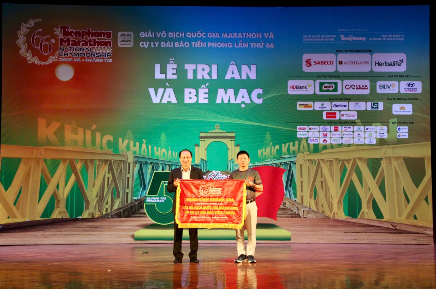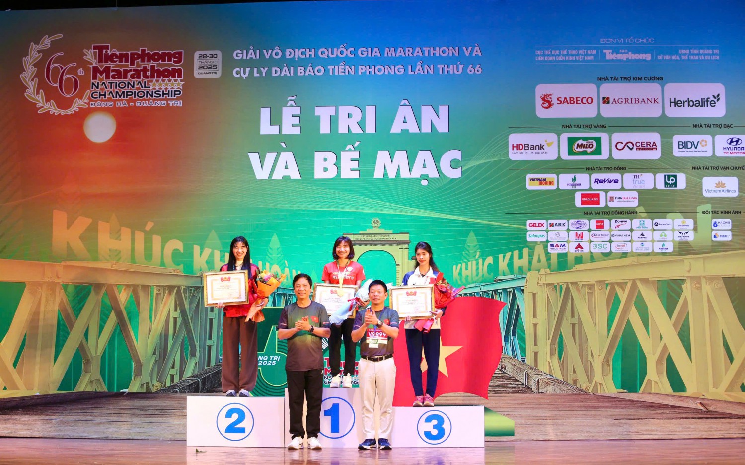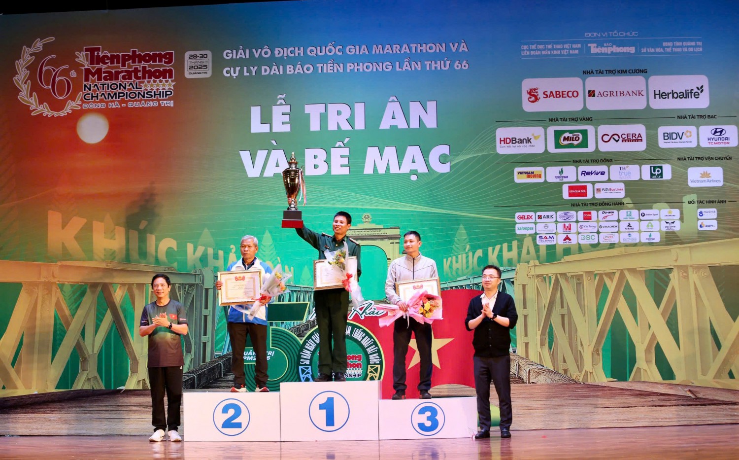 QTO - Sáng nay 30/3, tại Trung tâm Văn hóa – Điện ảnh tỉnh Quảng Trị, Ban tổ chức Giải vô địch quốc gia Marathon và cự ly dài Báo Tiền Phong tổ chức bế mạc Giải vô địch quốc gia Marathon và cự ly dài Báo Tiền Phong lần thứ 66 - năm 2025. Bí thư BCH Trung ương Đoàn TNCS Hồ Chí Minh Nguyễn Tường Lâm; Phó Chủ tịch UBND tỉnh Hoàng Nam; Phó cục trưởng Cục Thể dục thể thao Việt Nam Lê Thị Hoàng Yến; Phó Chủ tịch Liên đoàn Điền kinh Việt Nam Nguyễn Trung Hinh; Tổng Biên tập Báo Tiền Phong Phùng Công Sưởng tham dự.