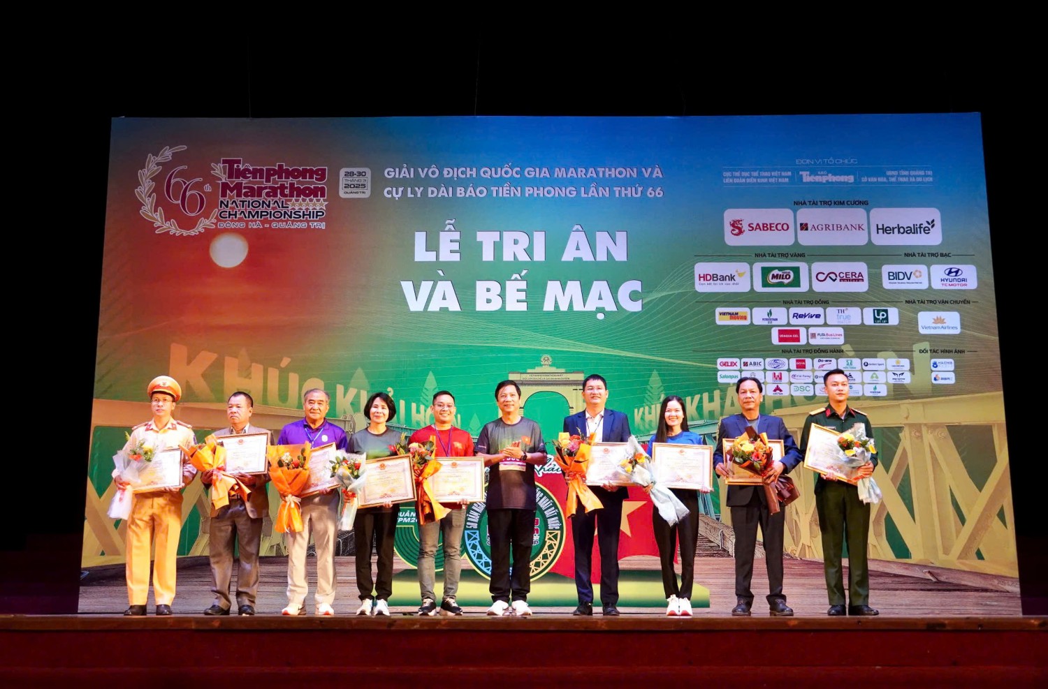 Dịp này, Chủ tịch UBND tỉnh tặng bằng khen cho 10 tập thể và 4 cá nhân đã có nhiều thành tích trong tổ chức giải. Ban tổ chức trao tặng Kỷ niệm chương của giải cho các nhà tài trợ; trao cờ đăng cai Giải vô địch quốc gia Marathon và cự ly dài Báo Tiền Phong lần thứ 67- năm 2026 cho tỉnh Khánh Hòa. Các đơn vị tài trợ trao tượng trưng 15 căn nhà hỗ trợ chương trình xoá nhà tạm, nhà dột nát trên địa bàn tỉnh Quảng Trị.