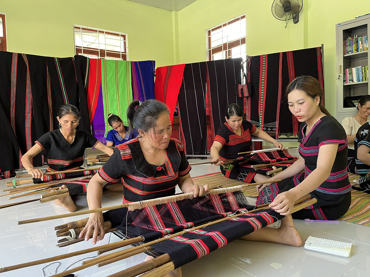 Nghề dệt thổ cẩm ở xã A Bung đang có chiều hướng phát triển tốt - Ảnh: V.T.H