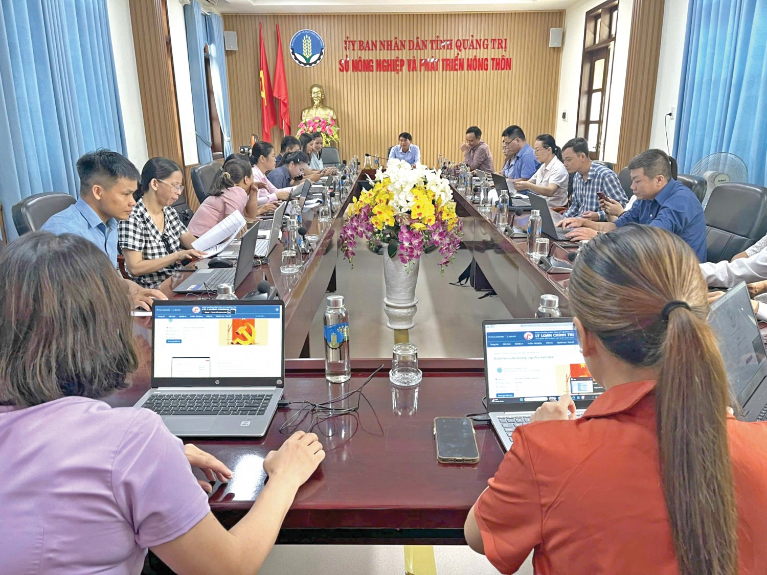 Học viên đối tượng 5 thuộc Đảng bộ sở Nông nghiệp và Phát triển nông thôn kiểm tra, đánh giá kết quả học tập lý luận trực tuyến năm 2024 -Ảnh: CHÂU MINH