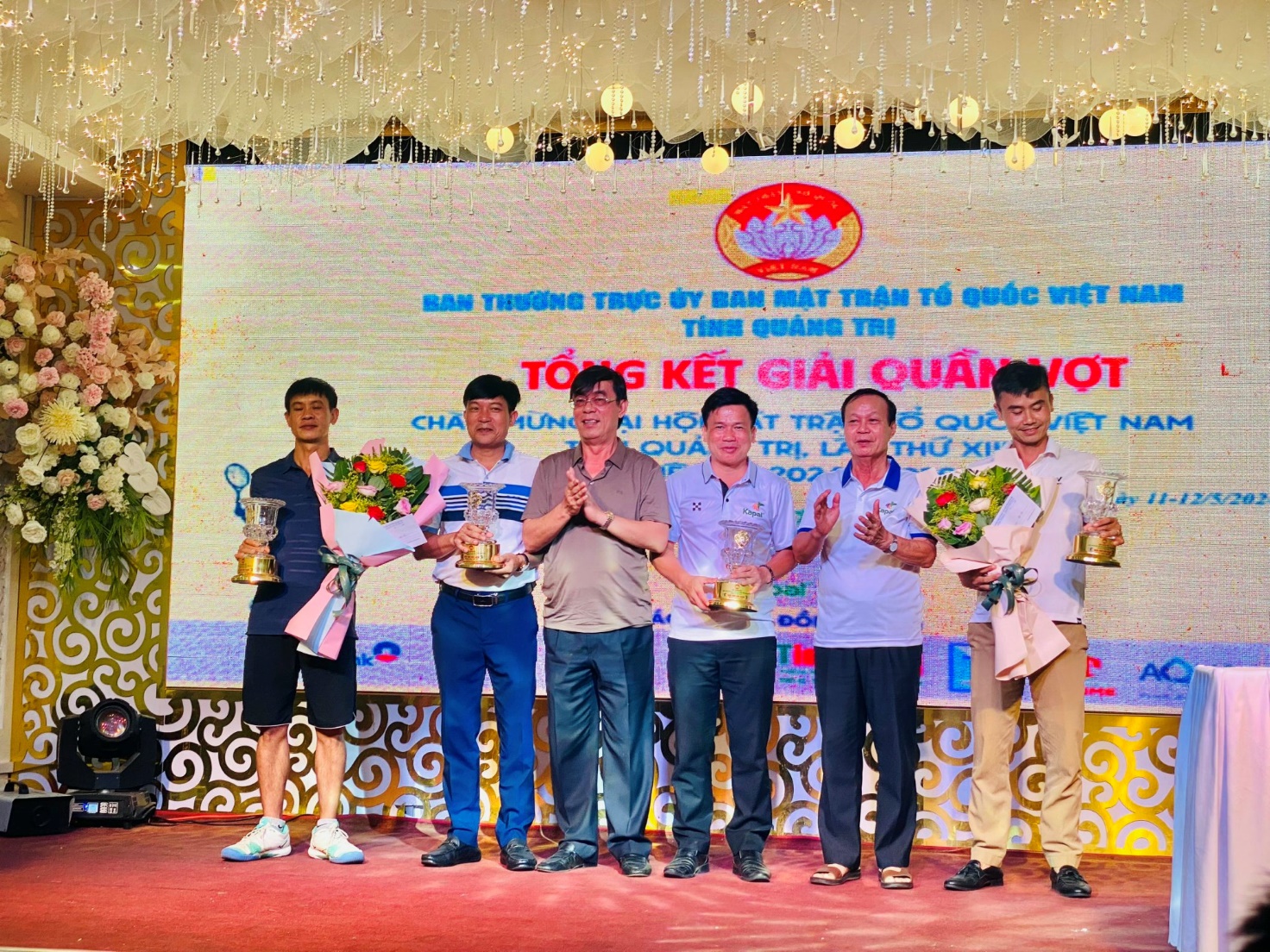 Kết thúc giải, Ban Tổ chức đã trao cúp phong cách cho 02 cặp đôi vận động viên Trần Anh Tuấn - Hoàng Quang Thắng đến từ UBND huyện Cam Lộ; Vũ Văn Phong - Lê Đức Chiến đến từ huyện Ủy ban MTTQ Việt Nam huyện Vĩnh Linh. Trao cúp đồng giải ba 02 nhóm cặp đôi vận động viên: Phạm Văn Nghiệm - Lê Công Cẩn đến từ Sở Kế hoạch và Đầu tư (Nhóm 1); Dương Tân Long - Bùi Đức Thành đến từ Ủy ban MTTQ Việt Nam tỉnh (Nhóm 1); Lê Nguyễn Hải Dương - Nguyễn Quang Kiệt đến từ HĐND tỉnh (Nhóm 2); Trần Bình Thuận - Võ Thanh Anh Vũ đến từ UBND huyện Hướng Hóa (Nhóm 2). Trao cúp á quân 02 nhóm đấu cho các cặp đôi vận động viên: Hoàng Đức Khang - Trần Văn Thuận đến từ Sư đoàn 968 (Nhóm 1); Hoàng Thanh Sự - Lê Mậu Quốc đến từ UBND thành phố Đông Hà (Nhóm 2). Trao cúp vô địch 02 nhóm đấu cho các cặp đôi vận động viên: Lê Hồng Sơn - Dương Văn Hợp đến từ Ủy ban MTTQ Việt nam tỉnh (Nhóm 1); Trần Văn Thạnh - Lê Quang Trung đến từ UBND tỉnh (Nhóm 2). Ban Tổ chức cũng đã trao biển tượng trưng vinh danh các nhà tài trợ đã tham gia đồng hành và hỗ trợ giải đấu diễn ra thành công tốt đẹp.