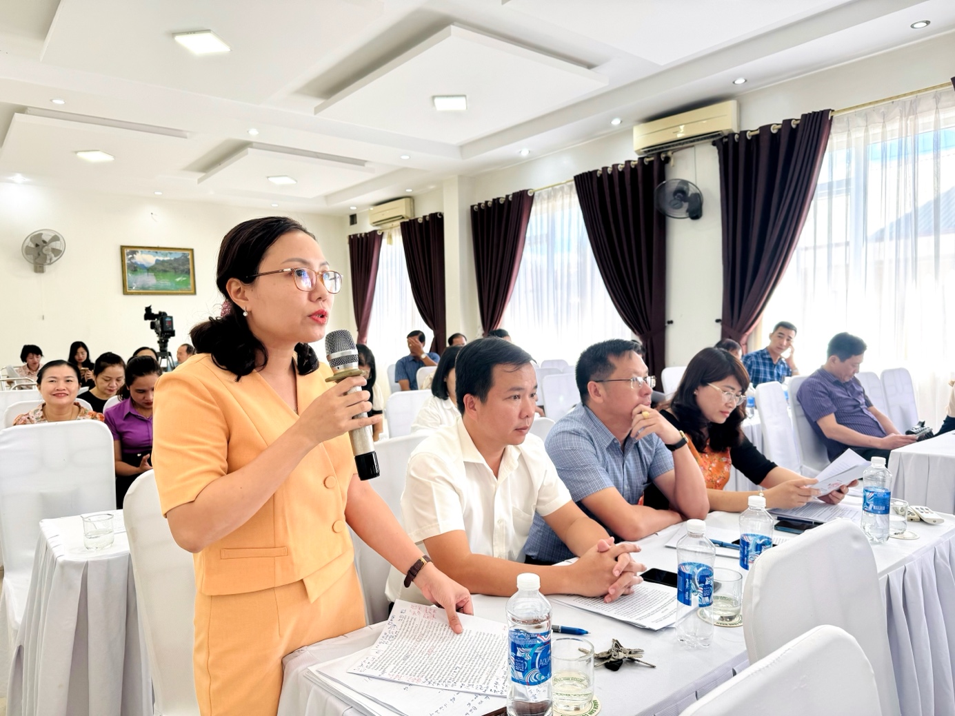 Đồng chí Phan Nữ Ngọc Lan, UVBTT, Trưởng Ban Tổ chức – Tuyên giáo, Uỷ ban MTTQ Việt Nam tỉnh Quảng Trị phát biểu tại hội nghị