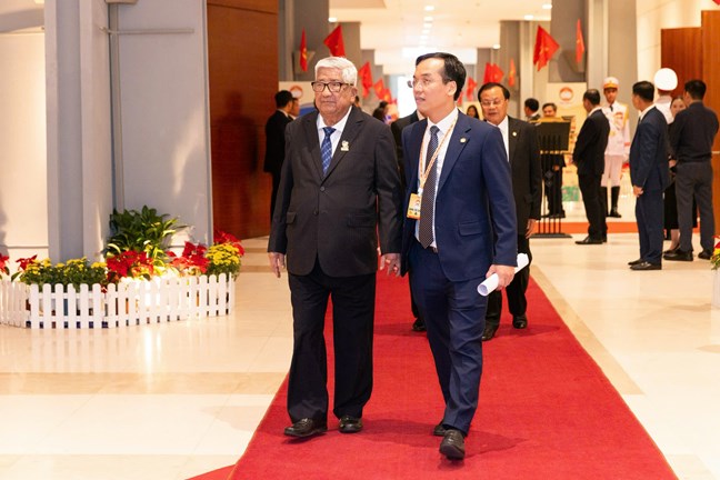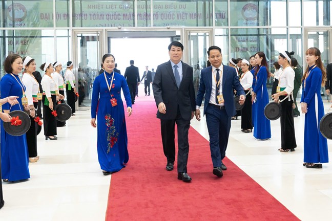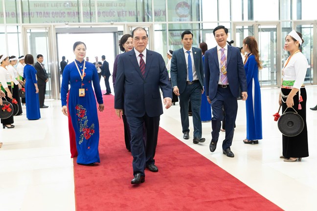 Đại hội rất vinh dự và xúc động được đón: đồng chí Tô Lâm, Tổng Bí thư Ban Chấp hành Trung ương Đảng Cộng sản Việt Nam, Chủ tịch nước Cộng hòa xã hội chủ nghĩa Việt Nam; Đồng chí Nông Đức Mạnh, Nguyên Tổng bí thư Ban chấp hành Trung ương Đảng cộng sản Việt Nam;