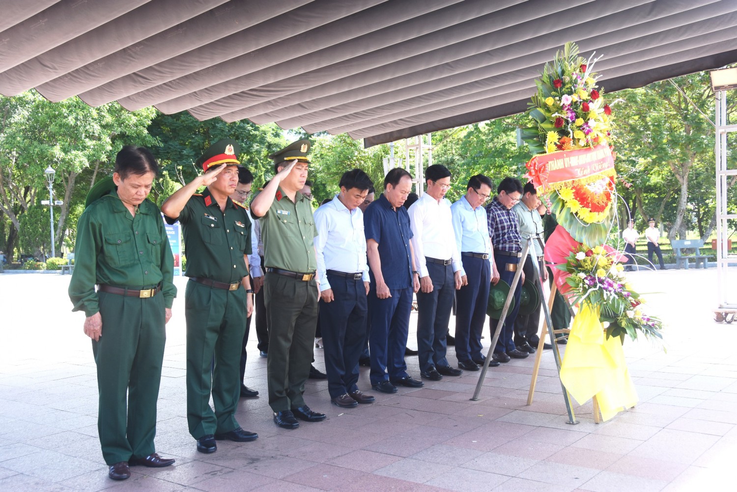 Trong không khí trang nghiêm, xúc động và với lòng biết ơn vô hạn, các đại biểu đã dành một phút mặc niệm và thành kính dâng hoa, dâng hương tưởng nhớ công lao to lớn của các anh hùng liệt sĩ - những người con trên mọi miền Tổ quốc đã hiến trọn tuổi thanh xuân, máu xương vì độc lập, tự do cho đất nước và hạnh phúc của Nhân dân - hiện đang yên nghỉ tại các Nghĩa trang Liệt sĩ quốc gia Đường 9, Trường Sơn.