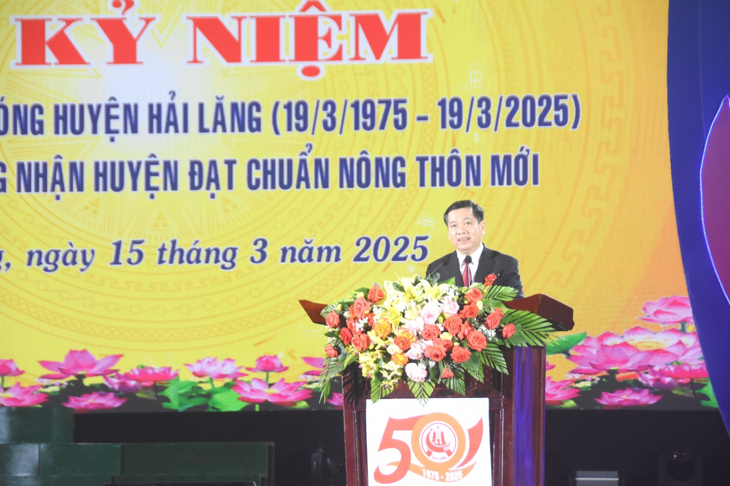 Phát biểu tại buổi lễ, Bí thư Tỉnh ủy Nguyễn Long Hải chúc mừng và biểu dương những thành tựu to lớn mà Đảng bộ, chính quyền và Nhân dân huyện Hải Lăng đã nỗ lực phấn đấu và đạt được trong suốt chặng đường 50 năm qua.