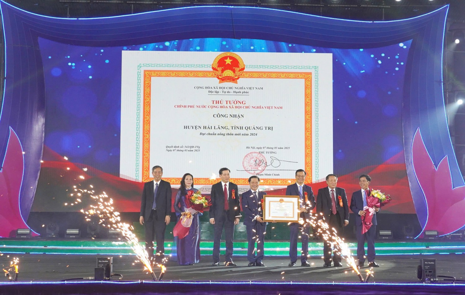 Dịp này, huyện Hải Lăng vinh dự đón nhận Bằng công nhận huyện đạt chuẩn nông thôn mới năm 2024 của Thủ tướng Chính phủ.