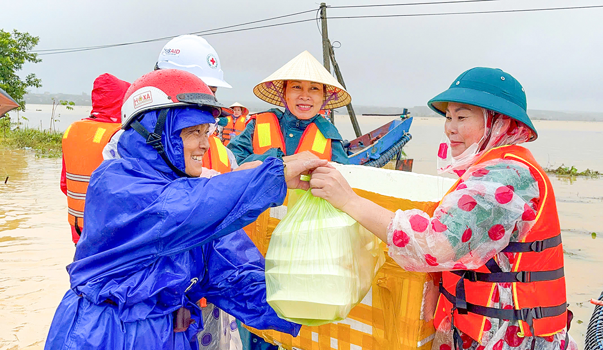 Trước tình hình mưa lũ khiến nhiều thôn, xã bị cô lập, đời sống người dân gặp khó khăn, Hội Liên hiệp Phụ nữ huyện Vĩnh Linh được giao nhiệm vụ làm đầu mối tiếp nhận, phân phối lương thực, thực phẩm hỗ trợ. Sau khi phát đi thông báo, rất nhiều tổ chức, cá nhân đăng ký hỗ trợ suất cơm cho vùng lũ. Để tránh lãng phí, hội đã lên lịch cho các đơn vị và số lượng cơm cụ thể vào các buổi.