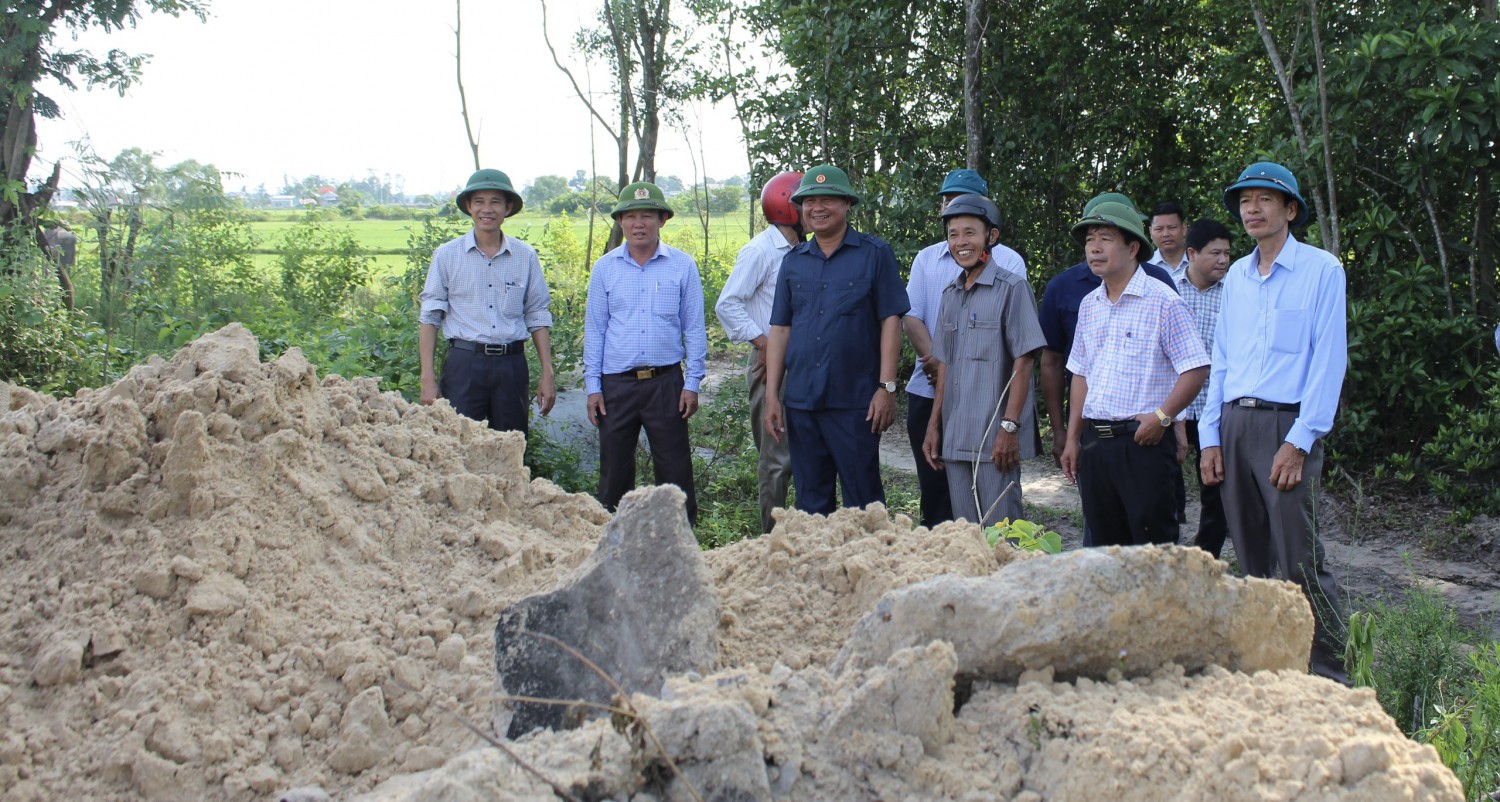 Chủ tịch UBND tỉnh Võ Văn Hưng kiểm tra công tác GPMB, di dời lăng mộ của chính quyền địa phương và người dân tại xã Gio Mai - Ảnh: H.T