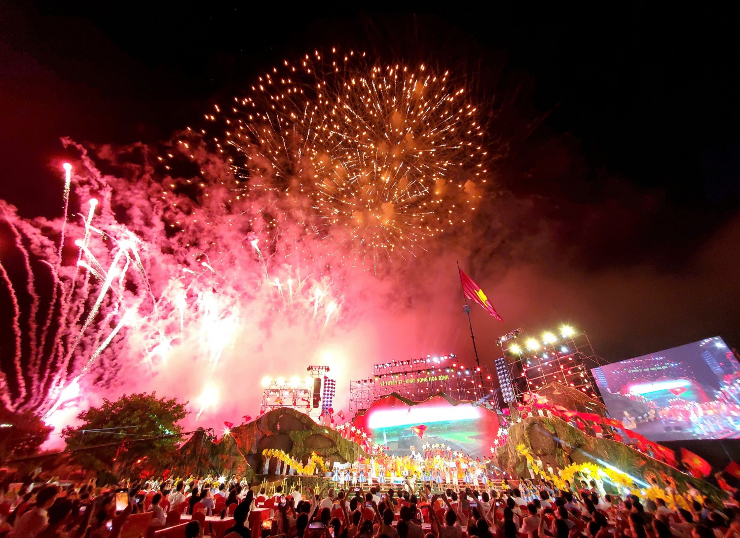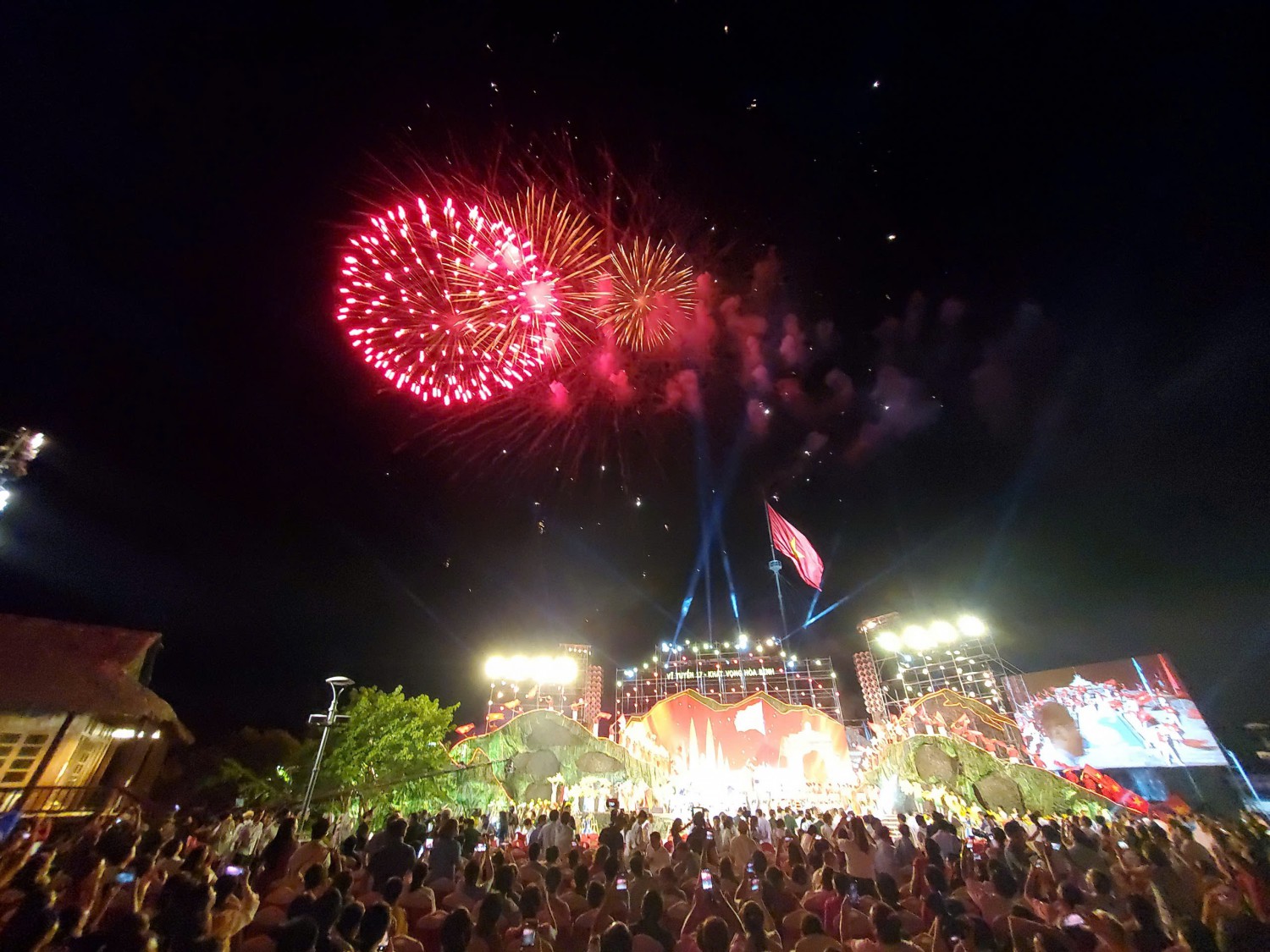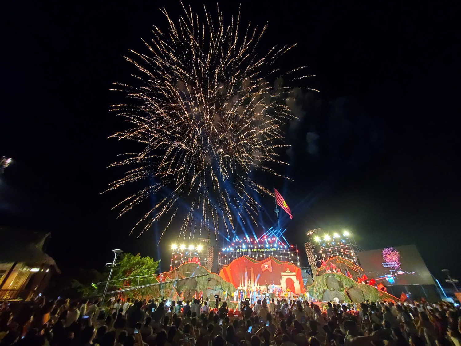Màn trình diễn pháo hoa rực rỡ kết thúc Chương trình nghệ thuật chính luận “Vĩ tuyến 17 - Khát vọng hòa bình” - Ảnh: Trần Tuyền