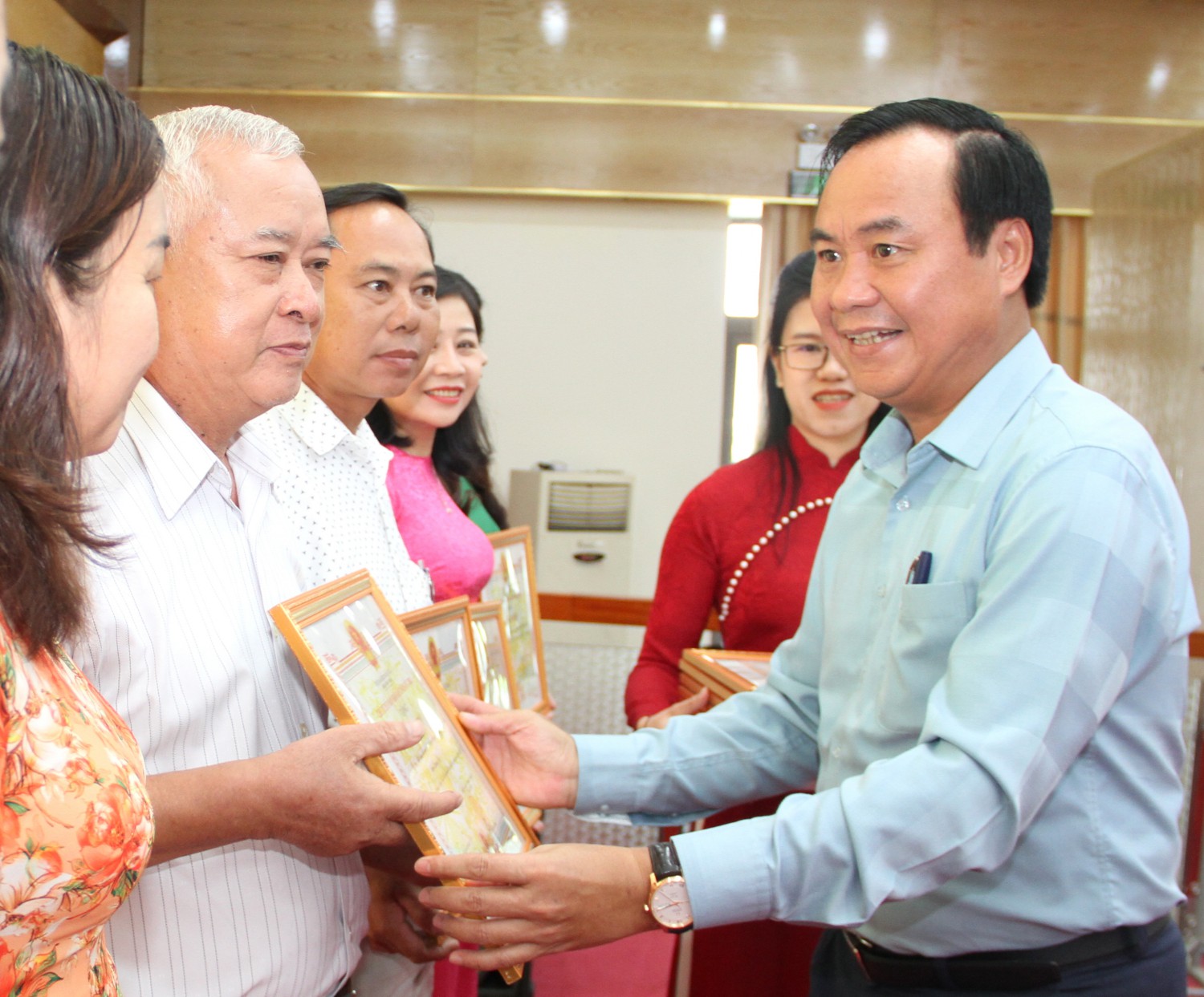 Chủ tịch UBND tỉnh Võ Văn Hưng tặng bằng khen cho các tập thể - Ảnh: MĐ