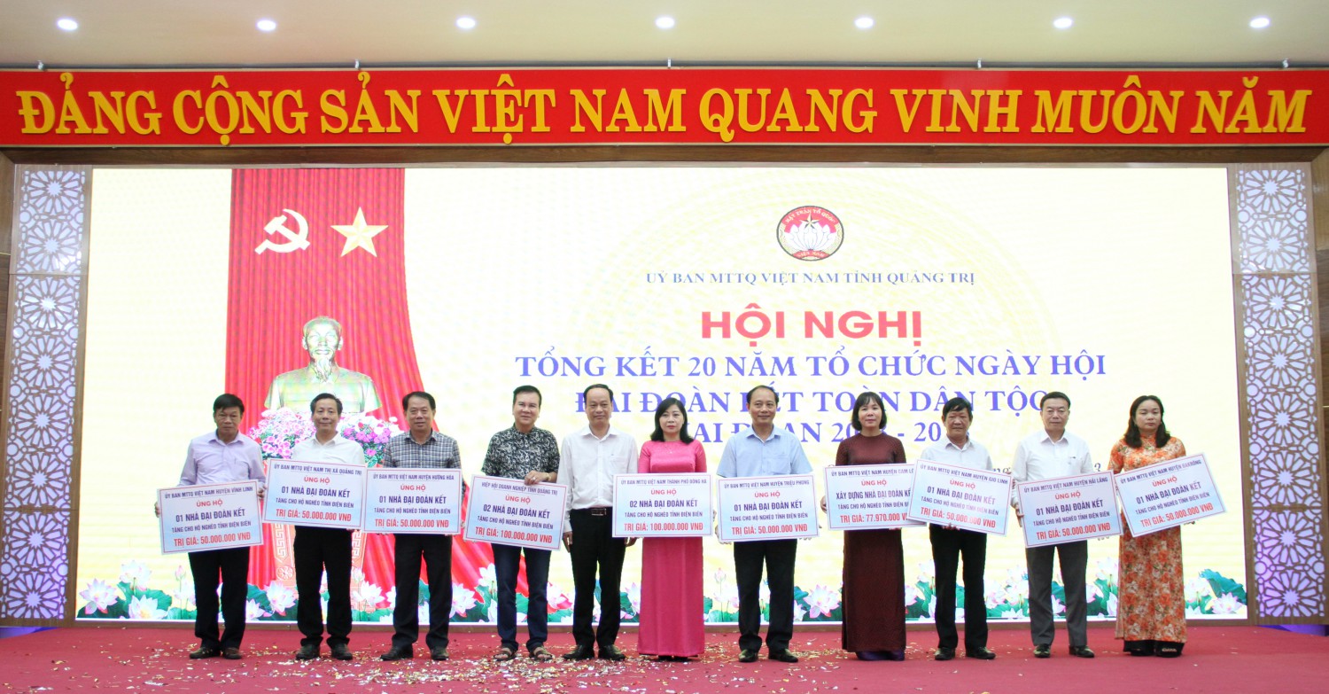 Hưởng ứng Chương trình vận động ủng hộ xây dựng nhà đại đoàn kết cho hộ nghèo tỉnh Điện Biên do Đoàn Chủ tịch Ủy ban Trung ương MTTQ Việt Nam phát động, Hiệp hội Doanh nghiệp tỉnh và Ủy ban MTTQ Việt Nam các huyện: Gio Linh, Vĩnh Linh, Triệu Phong, Hải Lăng, Cam Lộ, Đakrông, Hướng Hóa và thị xã Quảng Trị, TP. Đông Hà đã ủng hộ khoảng 600 triệu đồng.